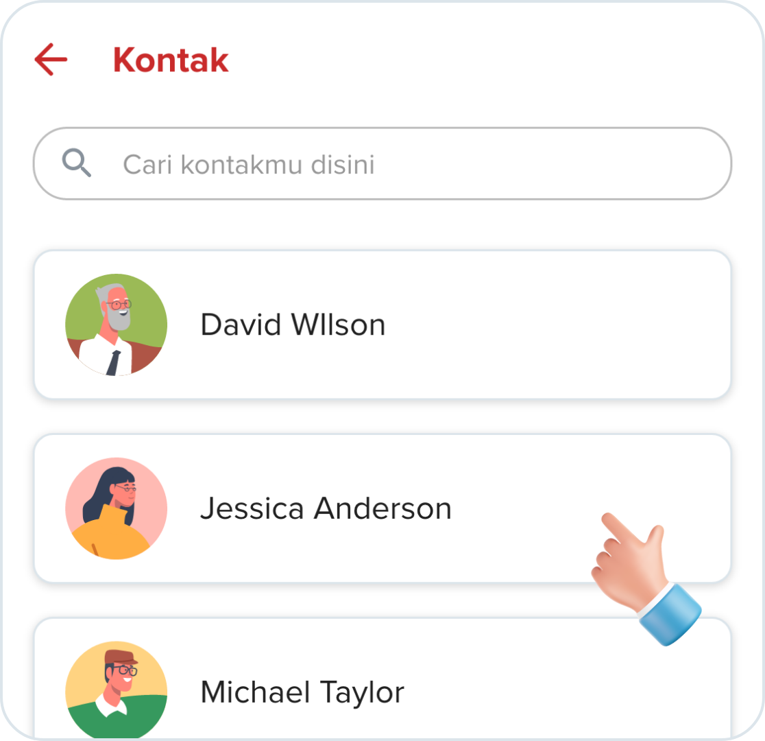 2. Pilih ikon "Kontak" untuk memilih penerima pesan.